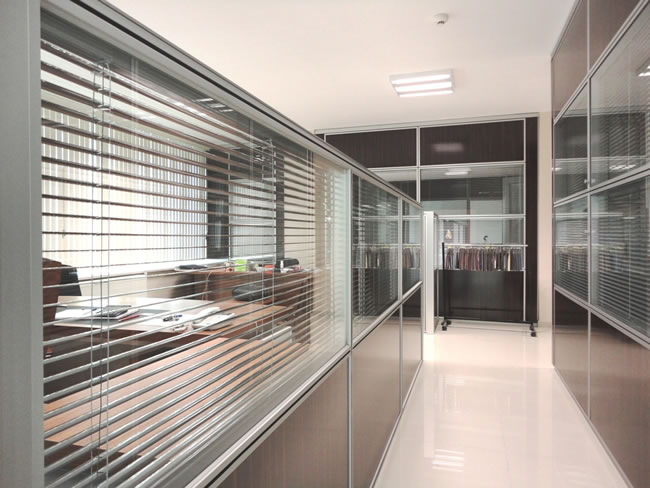 The combination of wooden or fabric coated panels with double-glazed units give value and smartness to today’s rapid business life.